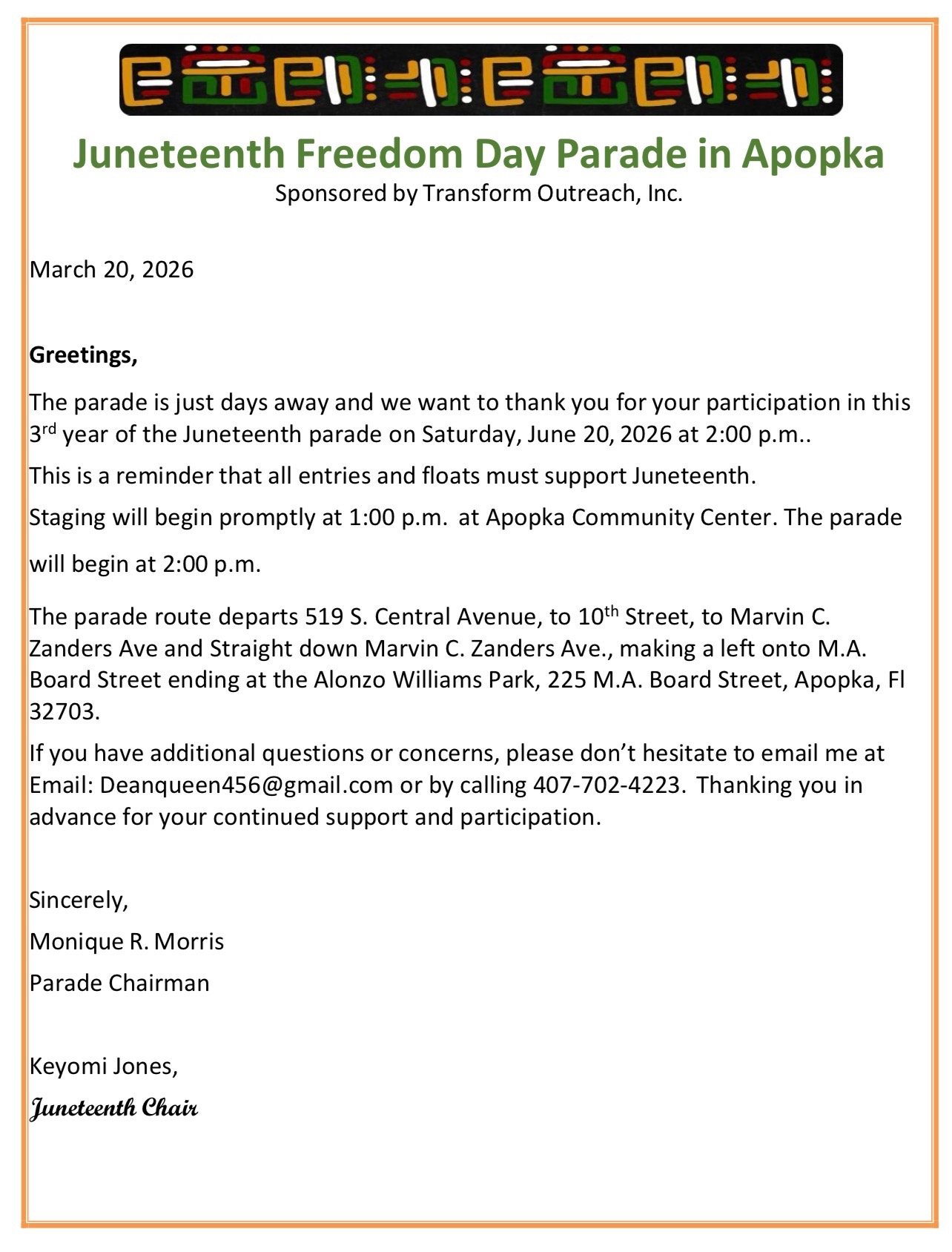 Become a part of the Parade that will spread the message. Sign up HERE! Contact Monique for more info: 407-702-4223